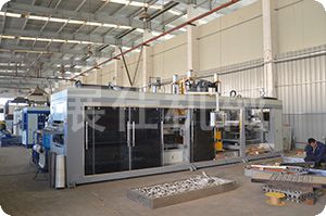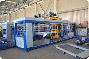 其机器主要构造是由给料、拉料、上下电加热炉、下闸、多功能可调尺寸、下模盘、上模、上闸、刀闸、切片、放片及配以真空装置等构成;而厚片吸塑常见产品有:家用电器内胆外壳、行李箱包、展架配件、装潢、汽车内饰、保险杠、挡泥板、美容器材、灯箱外壳、玩具车壳、工业面板、吸塑LOGO、卫浴产品、冰箱内胆等等。