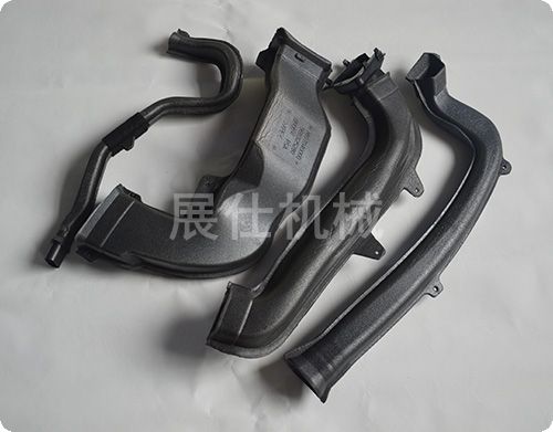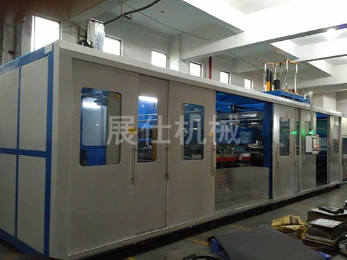 该设备为五工位一体电脑控制全自动XPE双层吸塑成型机生产线,产品型号为ZS-1515/200,该设备采用直线式流水线作业结构,适合于自动连续工作的双层厚片吸塑成型机。设备的主要用途是汽车空调通风管的专用设备。