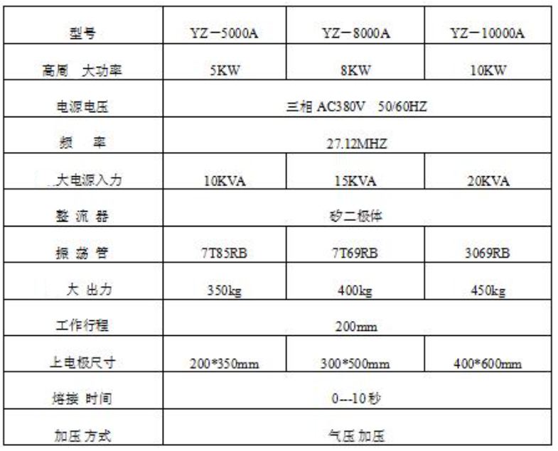 *采用低损耗的欧洲制式同轴高频谐振器,高周波输出电力强,加之有辅助电热系统,迅速使制品熔接,可一个人或二人操作,省人,高效能。