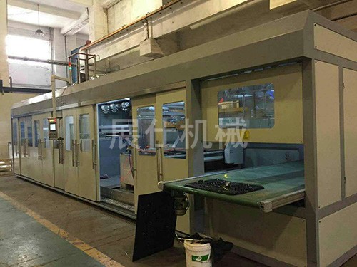 该机为全自动厚板材吸塑成型机,根据贵司的要求,设备的尺寸为1800*1600*300(长宽高的尺寸根据客户产品的大小可调节).型号定为ZS-1816/300,该设备特点是结构合理、操作容易,适合于较大型吸塑工件的成型。电气控制系统采用高清晰度触摸控制屏,配置了温度控制的智能算法,整个系统人机界面(HMI)。