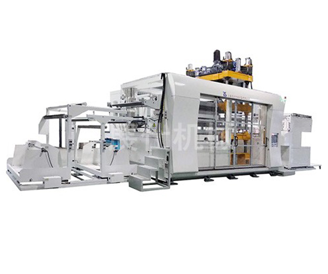 特点:ZS2A-10170型高效程控塑料气压热成型机,按照客户非标定制,运用新型塑料片材成型工艺技术,是集机、电、气一体化设计,采用微电脑及工控可编程PLC控制,整个系统HMI(人机界面)。方形隧道式进口辐射加热器,凹凸模皆可成型。拉片、加热、成型、切割、堆垛一次完成的塑料片材成型设备。减少人工、操作便捷、提高生产效率、可靠性强、自动化程度高,专用于热成型和产品热成型和产品自动冲切的流水式生产线。