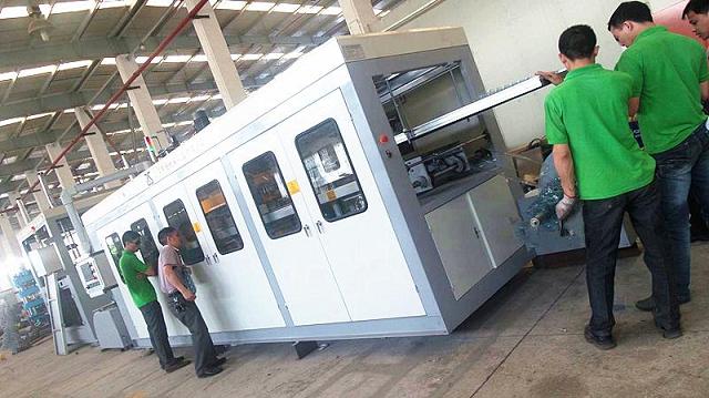 ZS-7285型程控塑料负气压热成型机,运用新型塑料片材成型工艺技术,集机、电、气一体化设计,采用微电脑及工控可编程器PLC控制,方形隧道式进口辐射加热器,凸凹模皆可成型,激光刀片冲切,加热、成型、冲切、堆垛分四工位,同时运行等先进技术,即送片、加热、成型、冲切、堆垛一次完成的塑料片材成型设备。减少人工、操作便捷、提高生产效率、可靠性强、自动化程度高,专用于热成型和产品自动冲切的流水式生产线。
